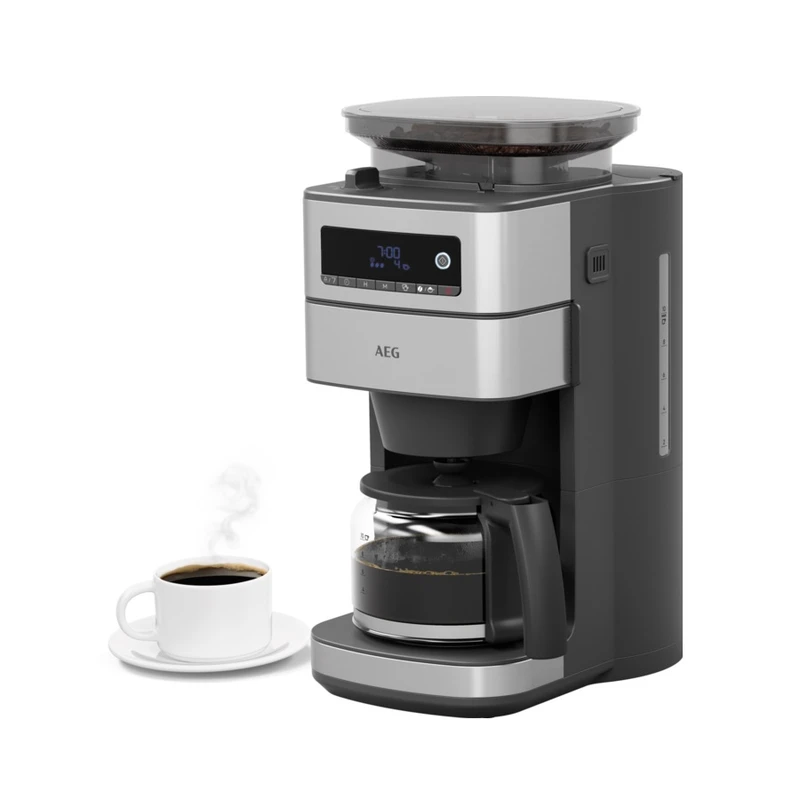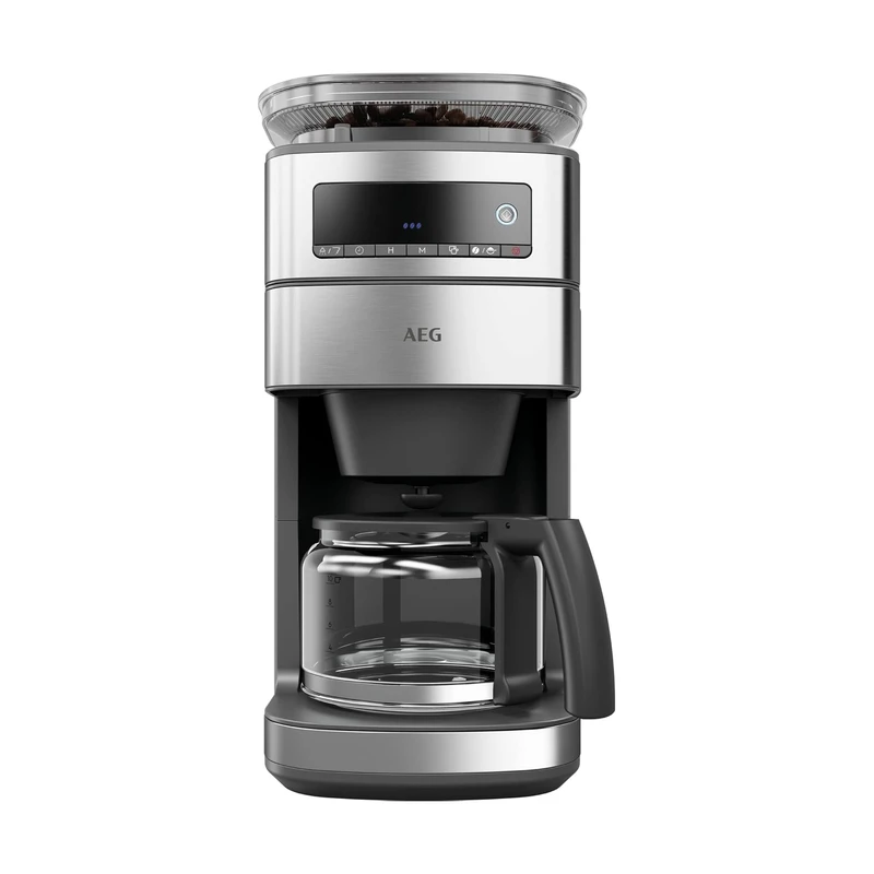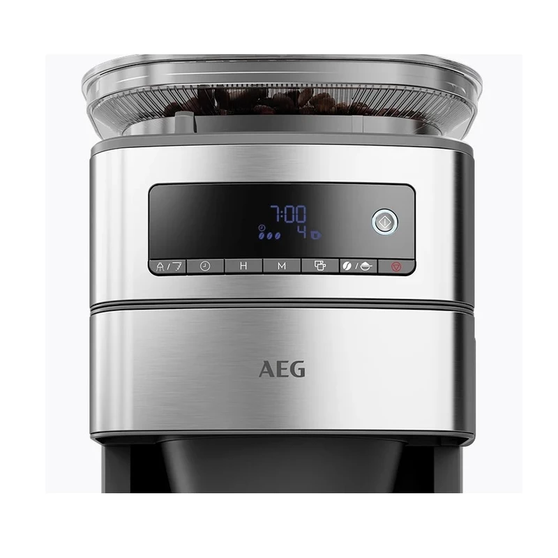 فروشگاه کاشانیفروشگاهلوازم خانه و آشپزخانهقهوه ساز آ ا گ مدل CM6-1-5ST، دارای صفحه گرم نگه دارنده قهوه، قابلیت تنظیم میزان غلظت قهوه، سیستم ضد چکه، به همراه آسیاب قهوه و قوری شیشهای رونوشت